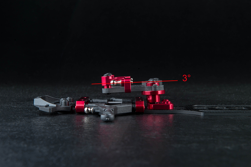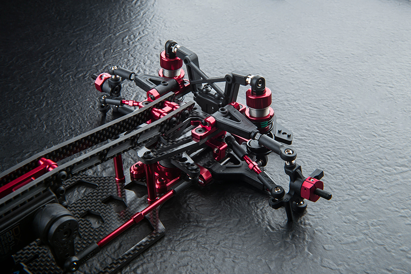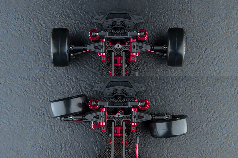 -New front upper and lower suspension arms with aluminum upper arm mount offering three-step caster adjustment.